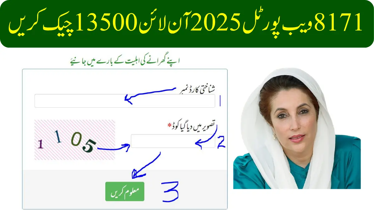 بینظیر انکم سپورٹ پروگرام کی 13500 روپے کی ادائیگی کی اہلیت اور اسٹیٹس چیک کرنے کا سب سے آسان طریقہ 8171 پورٹل استعمال کرنا ہے۔